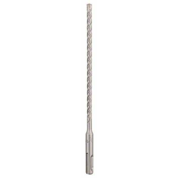 The SDS plus-5X Drill Bit offers highly efficient drilling in reinforced concrete. The geometrical form of the 4-cutter head prevents jamming and breakage for optimal results. The “turn-angle” head and the large and short dust removal channels within the 4-flute design provide fast dust removal so the bit can slice through concrete and rebar quickly with reduced wear. For efficient work and exact hole diameters, the centring tip guides drilling from the start, to prevent wandering, which can falsify the hole diameter. The bit is intended for use on masonry, concrete and reinforced concrete. It is compatible with rotary hammers with SDS plus holders.
